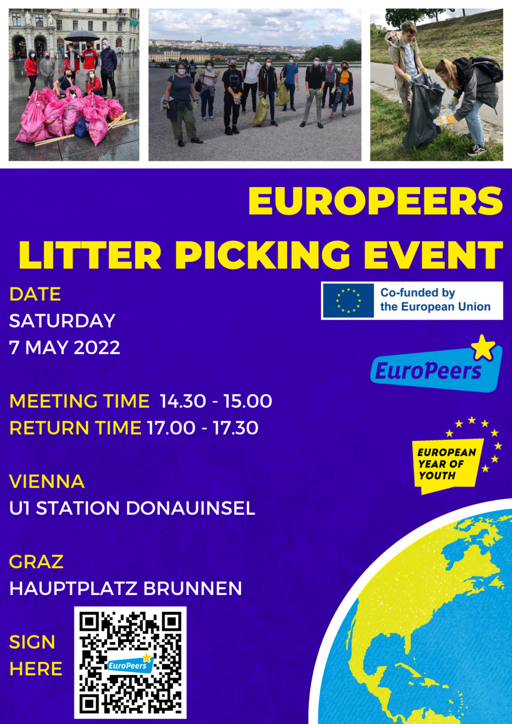 After being held already twice in Austria, this time it became international after an idea at the Annual Network Meeting 2021 in Rome. EuroPeers organized local actions in their cities / towns, where different people gathered to collect litter outside in the environment, at the same time all over Europe.