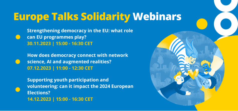 The series will start with a panel discussion on “Strengthening Democracy in the EU: What Role Can EU Programmes Play?”, on 30 November at 15:00 CET, which will bring together the European Commission, the Europeers network and Erasmus+ and European Solidarity Corps beneficiaries.