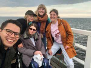Besides, the world of Erasmus+ allowed me to enter the world of International Training Courses which led me to the EuroPeers. I joined the EuroPeers French network in March 2021. Since then, I could reunite with the international networks, plan and take part in many events and meet people from all over Europe. I feel now I really want to promote E+ and encourage young people to take part in this adventure, especially the ones with fewer opportunities, including the ones with disabilities.